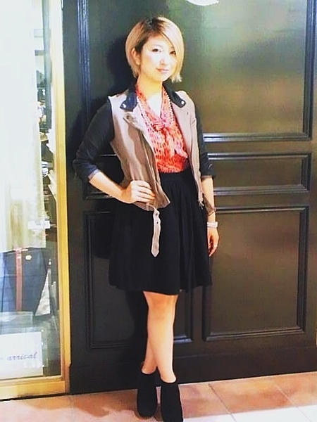 首元にマットなアクセサリーをもってくるとロックチックになりますよ。