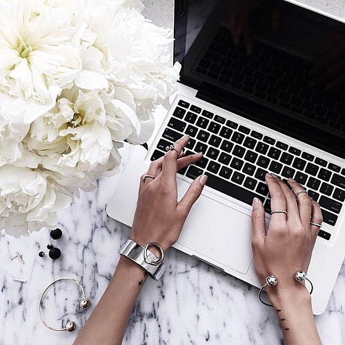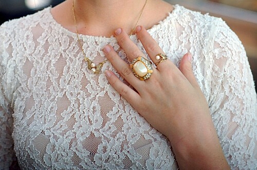 ブレスレットは、手首を華奢に見せてくれるものをチョイスして。