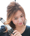 3.残しておいた顔周りの毛束を2~3束にわけて、1束ずつヘアアイロンで中間から毛先を