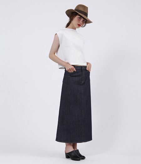 デニムマキシを合わせて