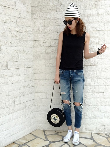 ノースリーブ✕クラッシュデニムで
