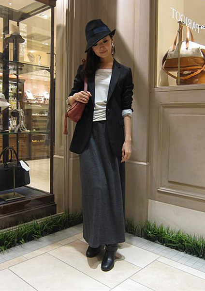 ロングスカートと合わせてスタイリッシュに着こなして。