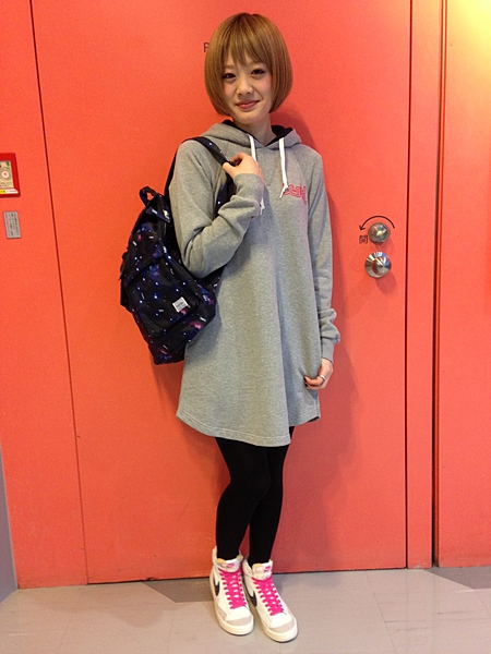 パーカーのスウェットワンピースの着こなし