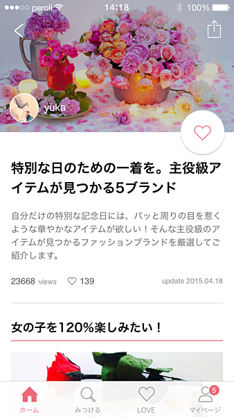 気になるものは「♡(LOVE)」ボタンを押せば