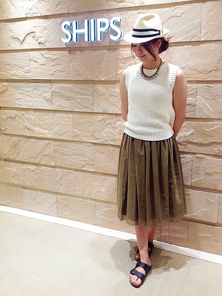 インナーにはTシャツとタイトスカートなどクールなスタイリングがおススメ。