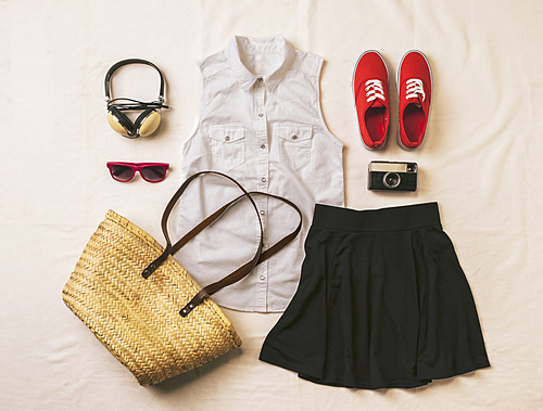 白の小物を上のほうに使って、目線を上げるとスタイルアップにも効果的!