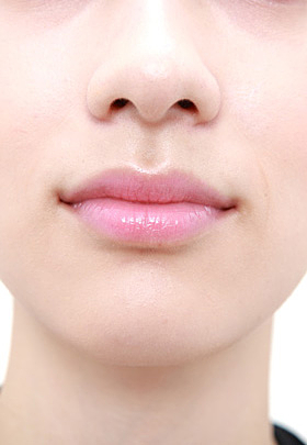 唇の中心に濃い目のピンクの口紅を塗ったら