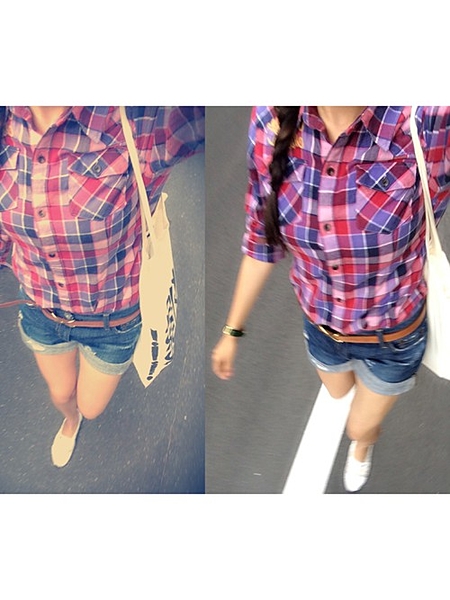 女の子なら絶対に大好きな赤チェックシャツ。