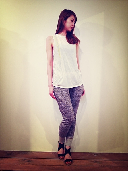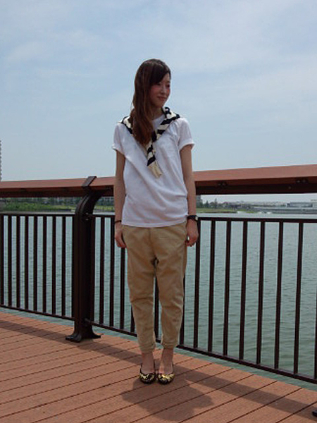 トップス:Tシャツ→足元は女らしく♡
