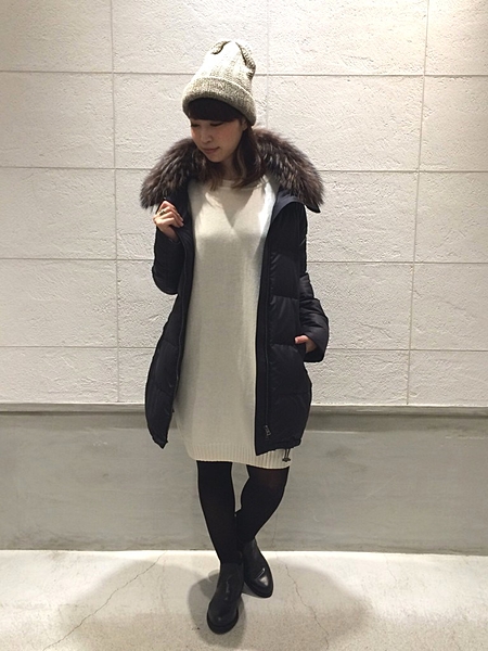 程よいボリュームの首元&袖口に、ミニ丈のバランスがなんとも可愛い、冬の愛されコーディネートです。