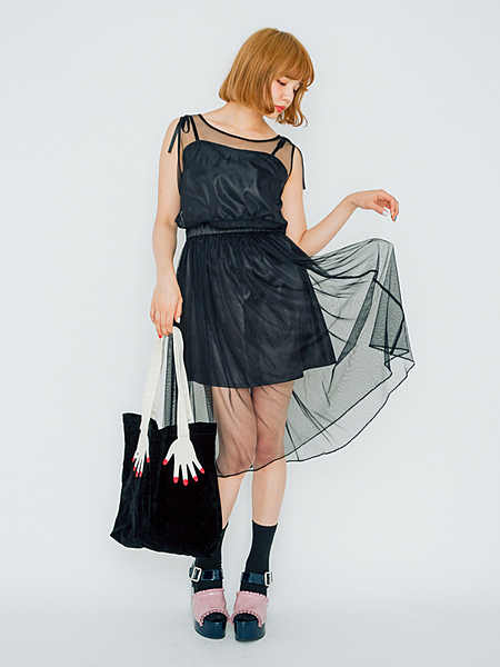 サテン地を使用したシェルモチーフが手軽に着こなしのアクセントになります。
