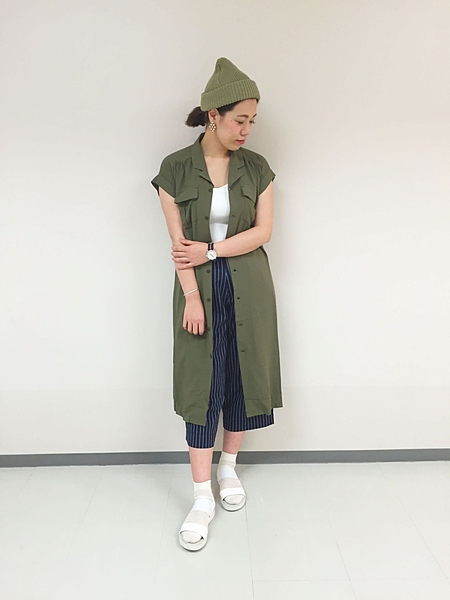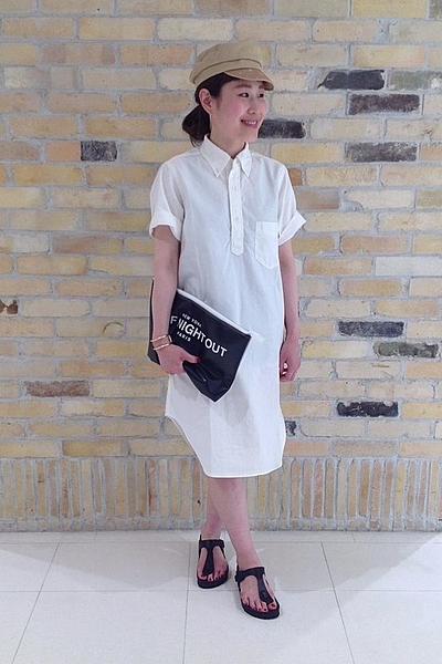 ボーイッシュなレトロシャツワンピのコーデ