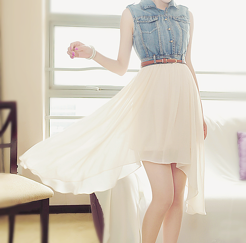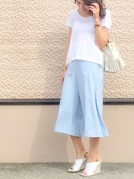 白×水色コーデをすることで涼しげに!