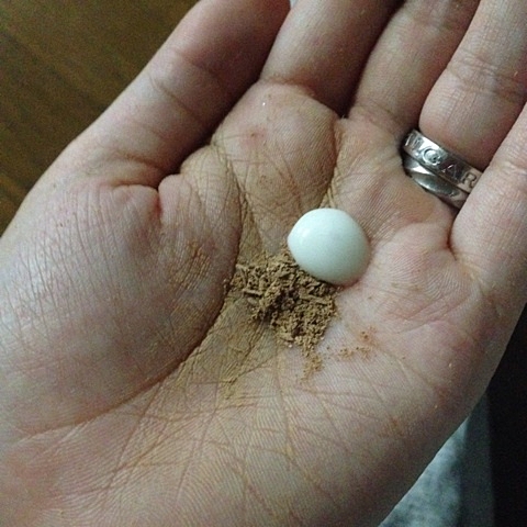 お気に入りのパウダーファンデを削ってまぜてクリーム状にしたものです。