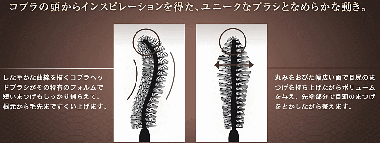 独自の研究で発明されたブラシの形がまつ毛をキュッとあげてくれるんです♡