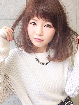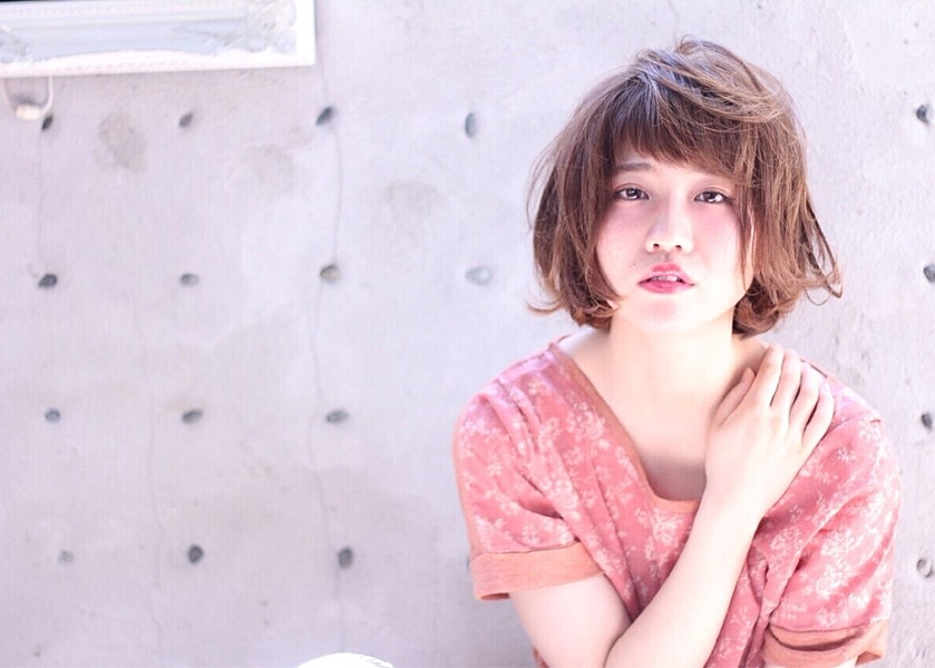 ボブスタイルとアシメバングでふんわりスタイルに。