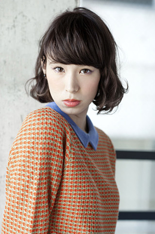 パーマの力を借りて、毛先をふわふわさせればたちまちボブも甘口のスタイルに。