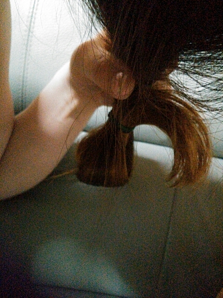 あまり強いと髪が折れるのでやわらかめのゴムで。
