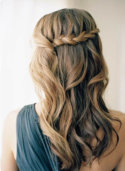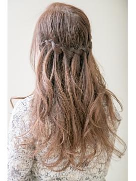 両サイドからはじめたウォーターフォールを後頭部で結んでハーフアップ風♡