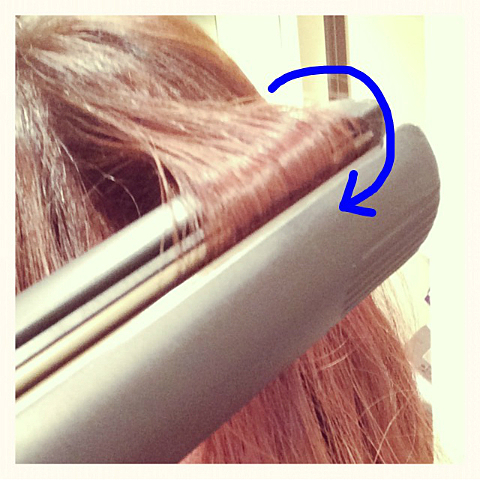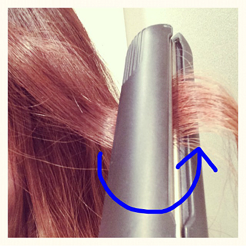 ここがコテと違うところで、コテは下から挟んで行くほうが綺麗ですが、ストレートアイロンは上から巻いて行ったほうが綺麗にできます♡