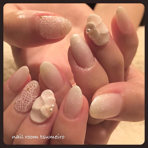 指先にをまとわせて爽やかガール。白レースネイルデザイン...