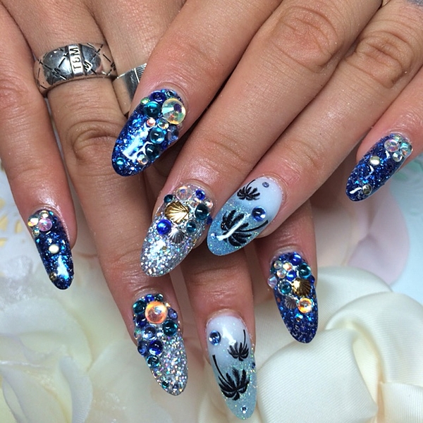 大きなビジューが印象的で夏らしいスカルプネイル♪