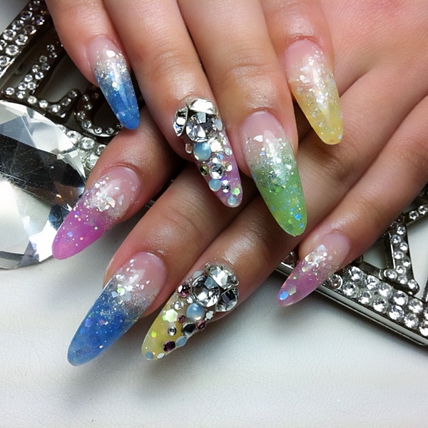 ネイルのご紹介です♪スカルプでのラメグラデーション、大きいパーツを組み合わせたビジューアートはこれからの季節に大活躍です!#スカルプ #ジェル #ラメグラデーション #ビジュー #夏 http://t.co/K6CcUVLyHe