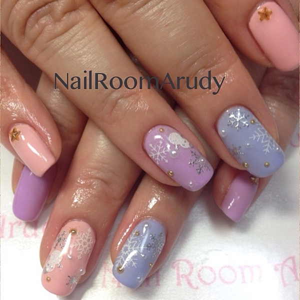 こちら冬のデザインですね♪パステルカラーに雪の結晶のシールがよく合っていてかわいいです!