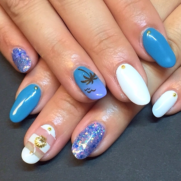 夏ネイルの必需品のシェルパーツにヤシの木の写ネイル♡