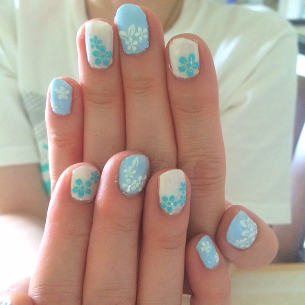 さわやかな花がシンプルながら上品でかわいい写ネイルですね♪