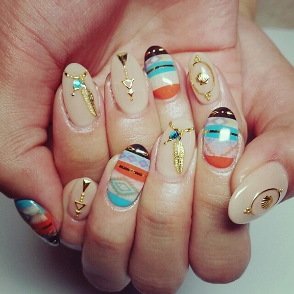 フェザーのデザインが印象的なとってもかわいい写ネイルですね♪
