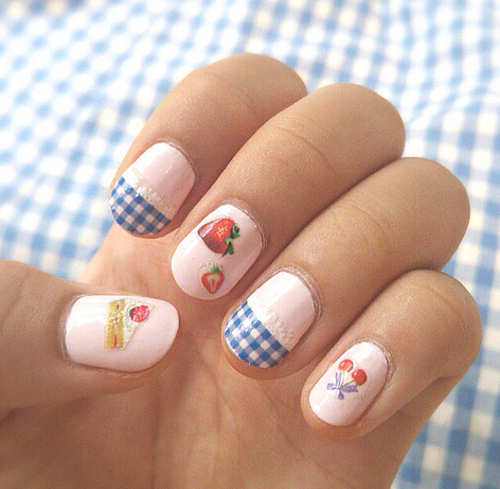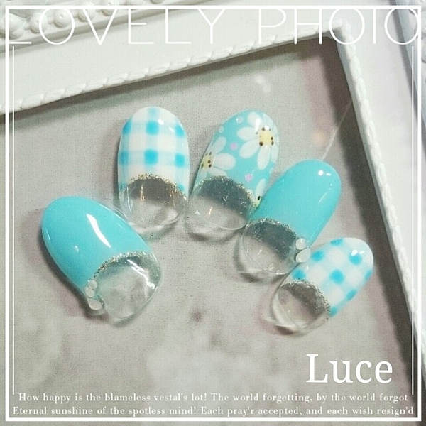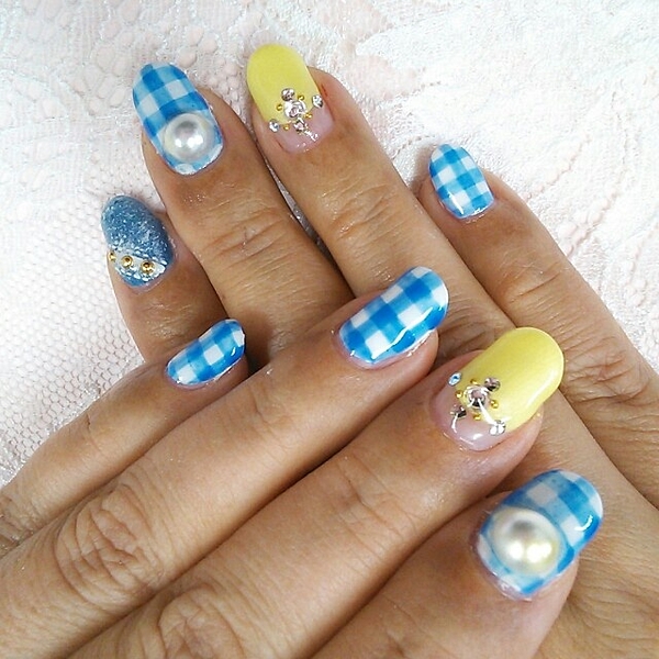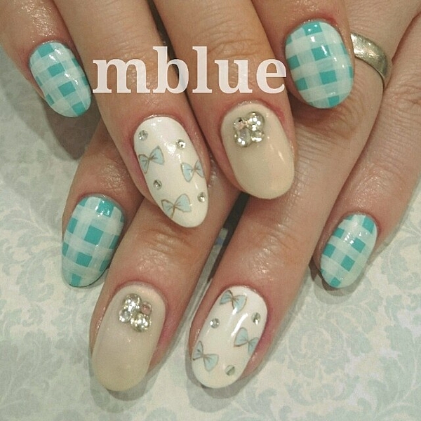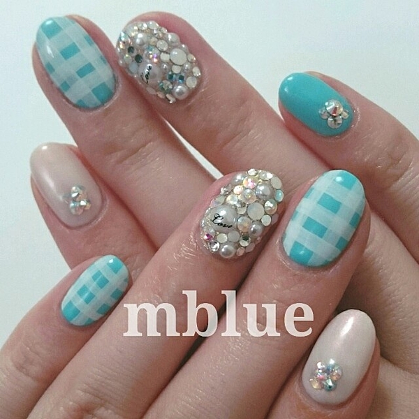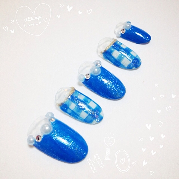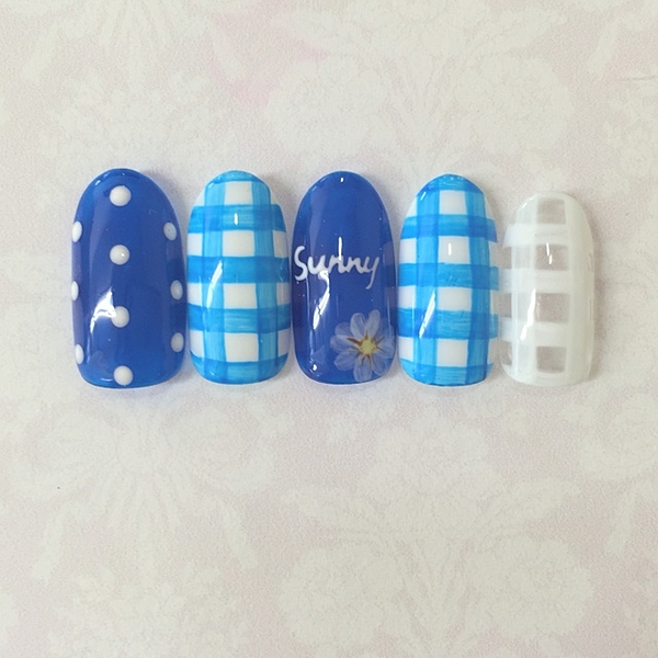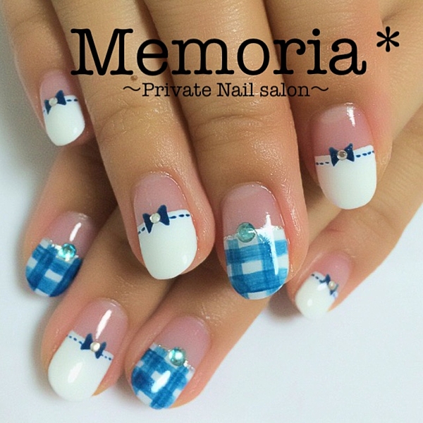 夏だってギンガムが好き!寒色系ギンガムチェックのネイルカタログ♡