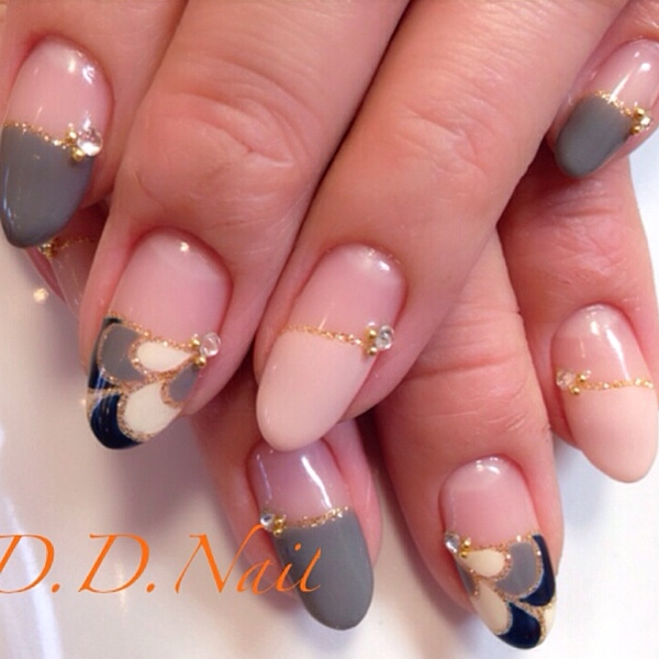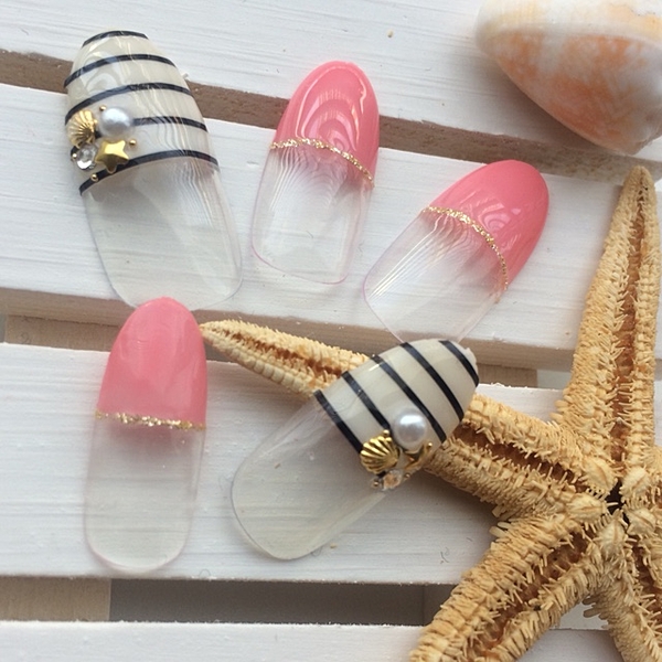 逆フレンチネイルはストーンでみんなと差をつけよう♡