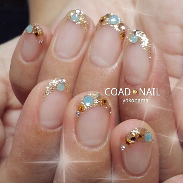 ▷:ゴールドフレンチネイル
