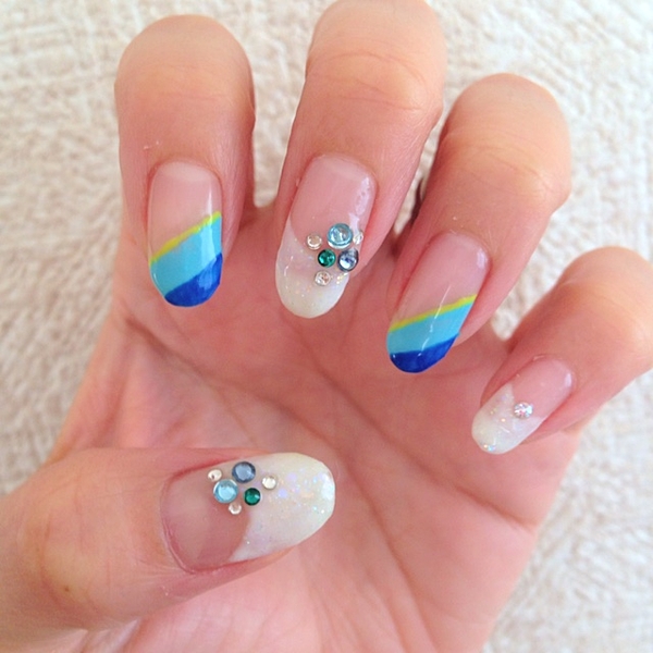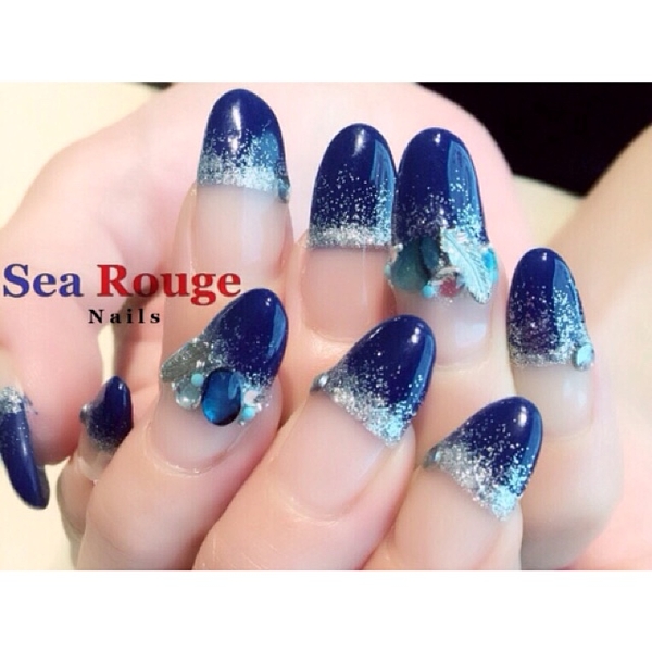 ★夏を表現する★ ★ウルトラマリンなフレンチネイル ★ラインストーンを使った涼しいオーシャンネイル ★夏らしくブルーベースのカラー #かわいかったらRT http://t.co/wV830c5ucD