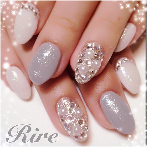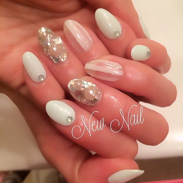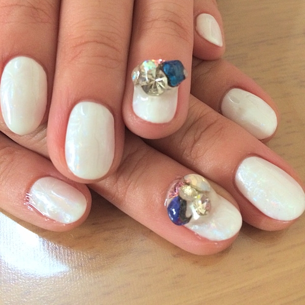 ホワイトのグラデーションにストーンが入ったデザイン☆
