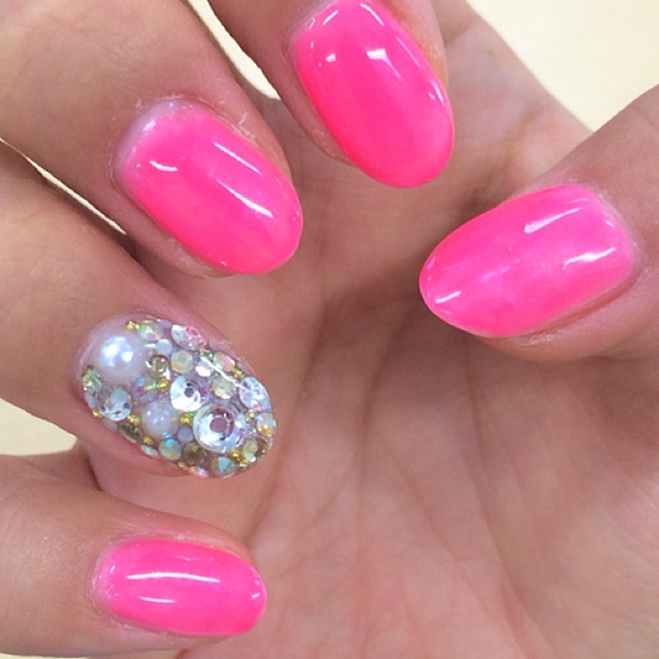 *.° ネイルチェンジしてきましたっ! ピンクのキラキラストーンの ネイルですっ꒰ ੭ˊ꒳ˋ ू ꒱♡*⸝⸝ . . http://t.co/QRkRYaPCwA
