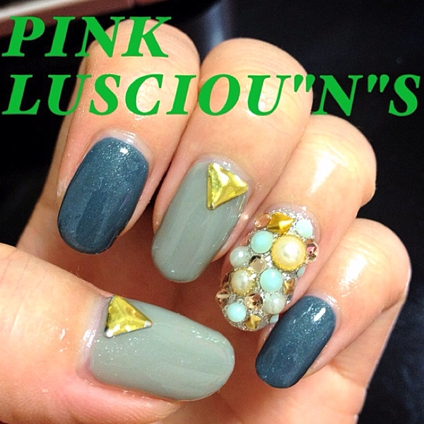 淡いカラーもストーンを入れてひきしめたデザイン。