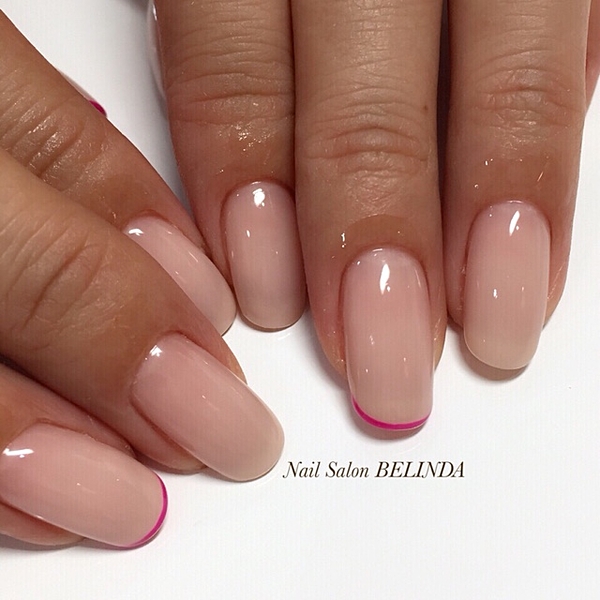 ミルキーピンクのグラデーションに、先端はホットピンクを入れると、きちんと感の中にも可愛さのある指先に♡