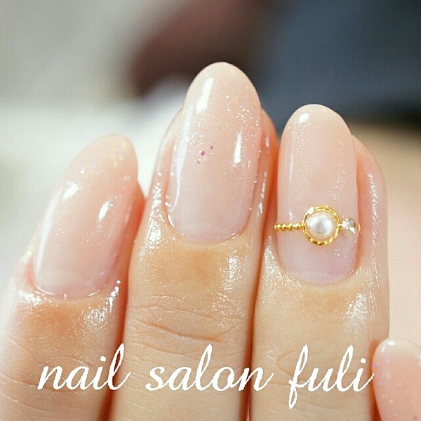 ラメやシェルをのせて、上品なキラキラネイルに・・☆