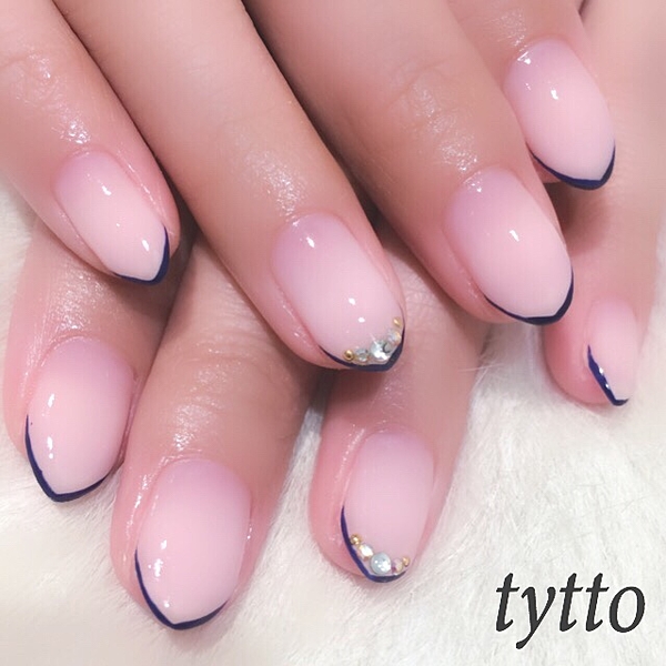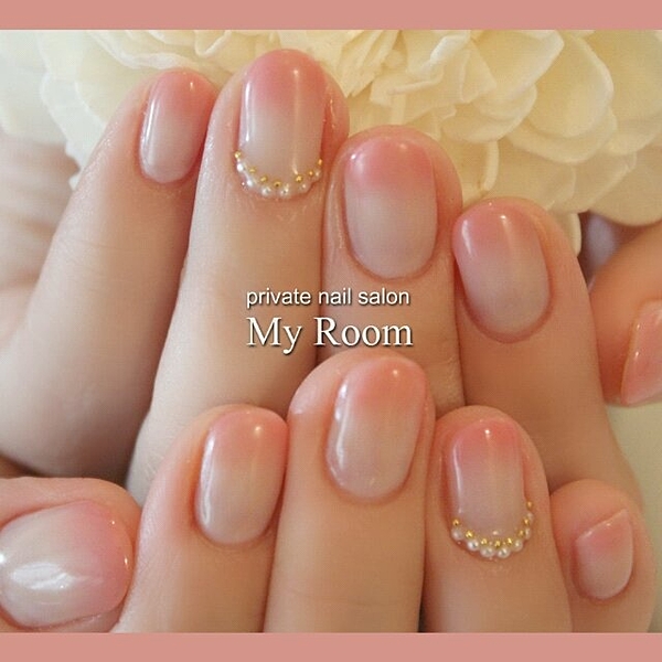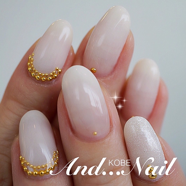 シンプルなグラデーションの根元に、小さめのラウンドスタッズを1つのせると上品に仕上がります♡