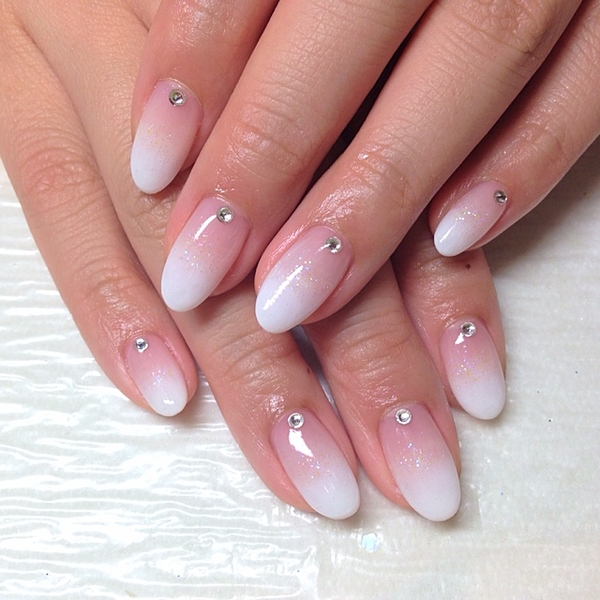 ホワイトとピンクのグラデーションがキレイなガーリーネイル♡