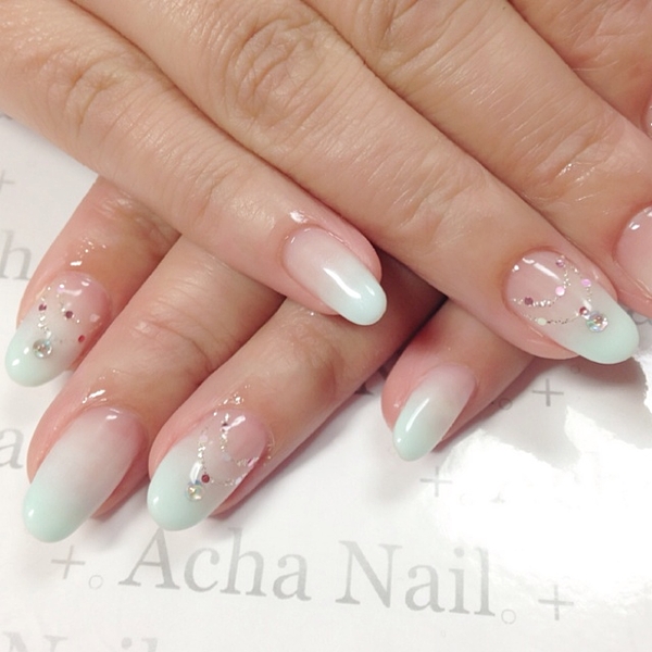 ヌーディーなグラデーションで、きれいめな指先を演出して・・