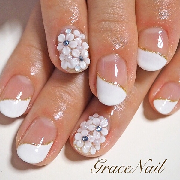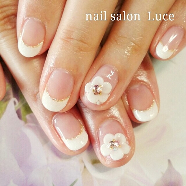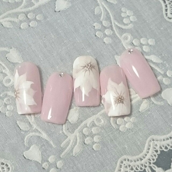 フラワーモチーフはちらっと描くだけでも華やかさが出ますからウエディングネイルには最適です。