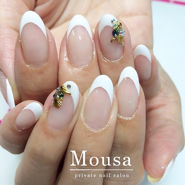 長めの爪も、白を基調にすることで上品に仕上がります。