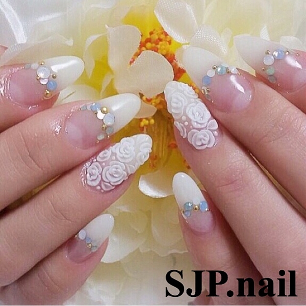 ウエディングネイルは一生に一度しか出来ませんから、いつもより華やかなデザインを楽しみましょう!