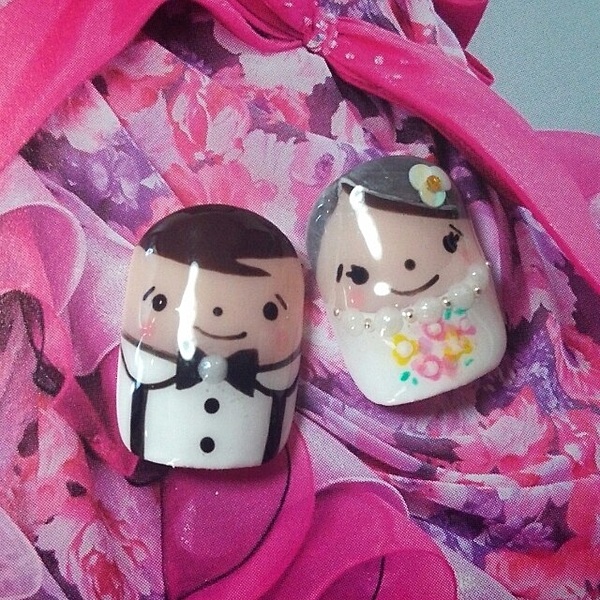 似顔絵ネイルにイニシャルまで入れたら、完璧なウエディングネイルですね!