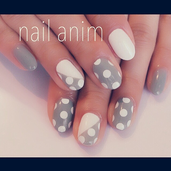 1本ずつドットとホワイト1色をななめにして、オシャレなデザインですね♪