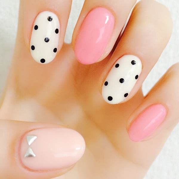 小さめのラウンドスタッズでドットにして、きれいめ可愛いデザインに♡