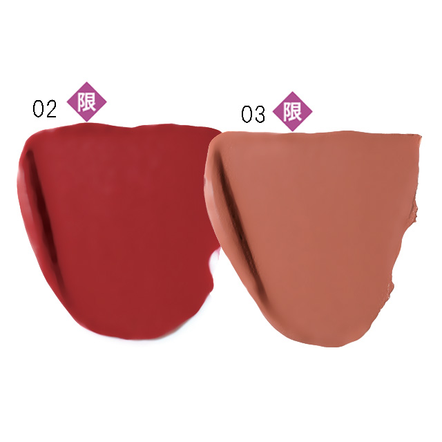 ツヤを適度に抑えた、なめらかなマット質感のリップ。01は夏肌に合うオレンジ、02は透明感が際立つレッド、03はセクシーなヌードカラー。